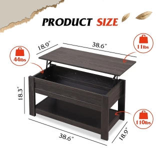 Designed to fit most living spaces without overwhelming the room. Dimensions: 38.58" W x 18.31" H Lift-top capacity: 11 lbs Hidden compartment capacity: 44 lbs