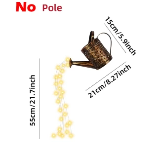 Add a touch of whimsy and sophistication to your outdoor decor with the Solar Watering Can Light. Whether hung on a shepherd's hook or placed atop a table, it serves as both an eye-catching ornament during the day and a mesmerizing light source at night.